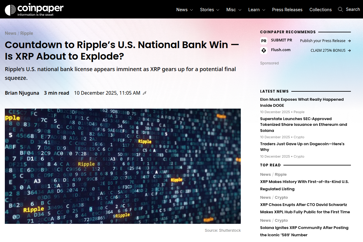 Some observers note that XRP’s price action has not always followed news flow. According to CoinDesk, XRP climbed to $2.17 recently but then fell back as large holders appeared to sell into strength, suggesting some traders are locking in gains ahead of the bank license decision.